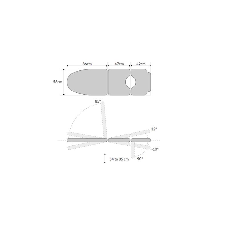 – Upholstery: E30/5 – foam 30Kg/m3 5cm covered in medical high-quality leather