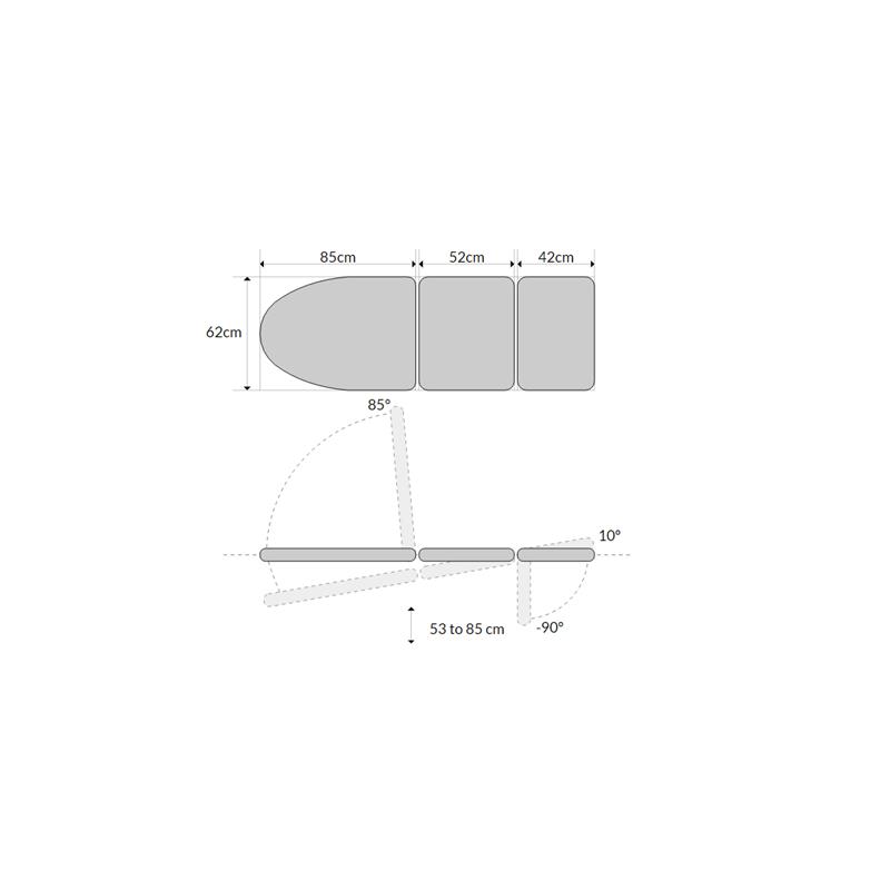 – Electrically adjustable height: from 53 to 85 cm