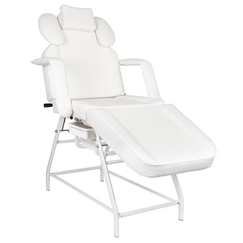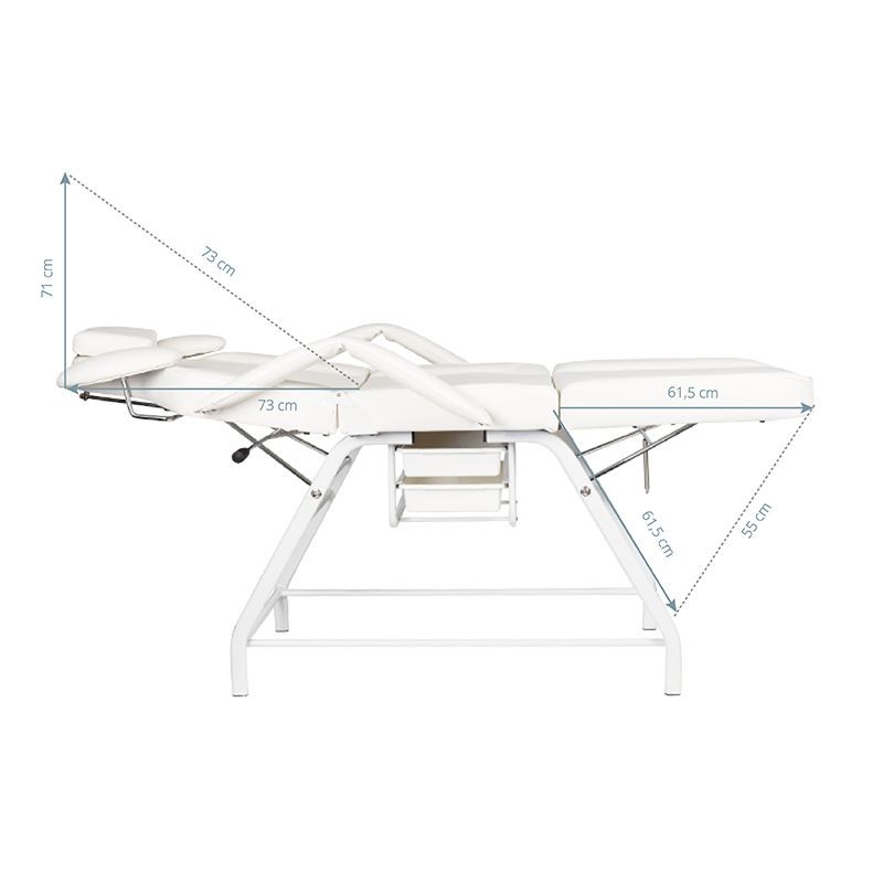 The three-part cosmetic massage table is very easy to operate – manually operated. The cosmetic table allows for independent adjustment of the back and leg rest.