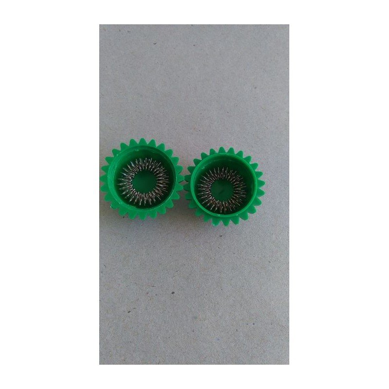 Massage ball with two rings for finger meridians. The balls come in different colors.